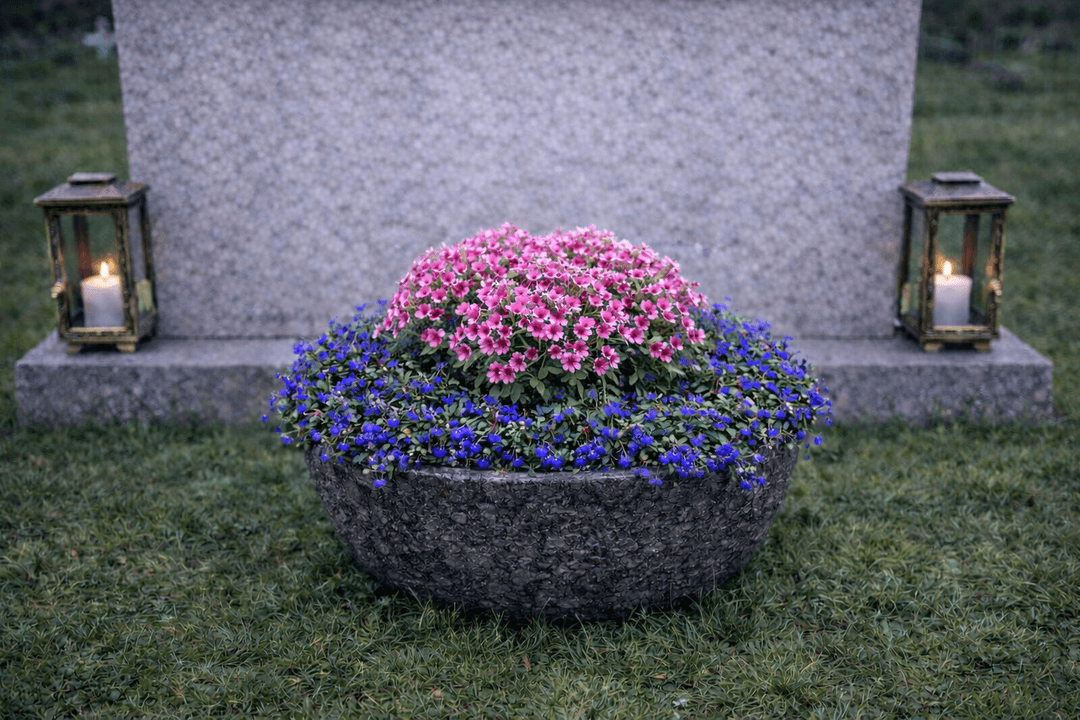 Blómin eru sett út upp úr mánaðarmótum maí/júní í keri með mold sem staðsett er á leiðinu. Kerið er 30 cm. Blómin eru fjarlægð í október/nóvember.